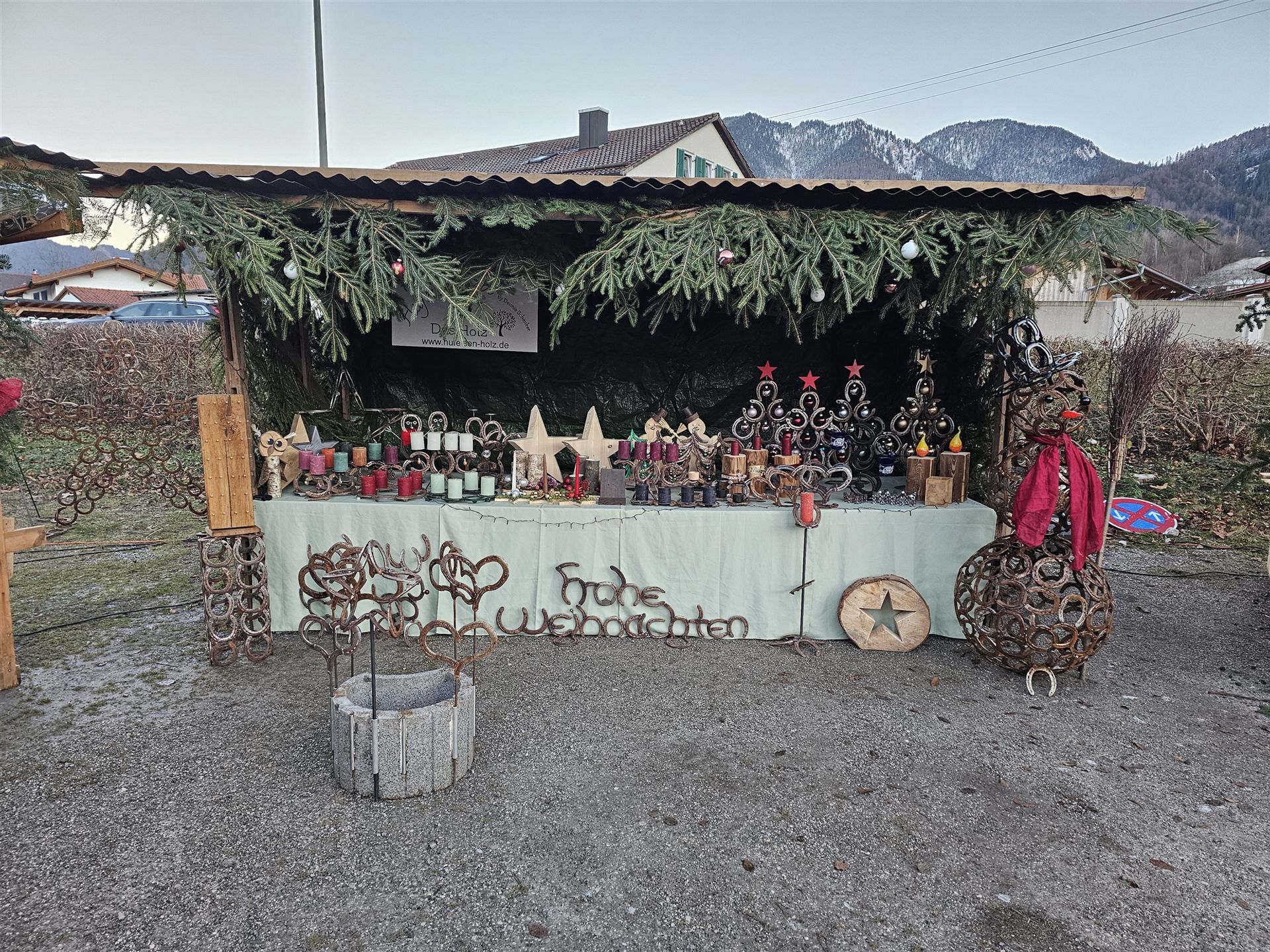 Holzschnitzereien, Drechselware, hausgemachte Plätzchen, Hufeisenart |