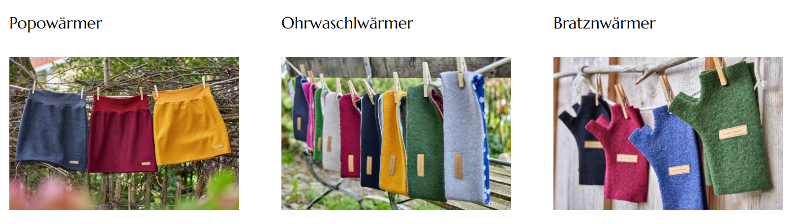 Popowämer (Über-Röcke) aus Merinowolle, Ohrwaschlwärmer, Bratznwärmer ebenfalls aus Merinowolle | |